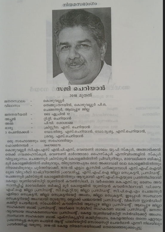 സാംസ്ക്കാരിക വകുപ്പ് മന്ത്രി.സജി ചെറിയാൻ .